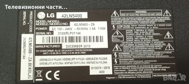 LG 42LN5400-ZA със счупен екран T420HVN05.0/EAX64891403(1.0) EBR76461809/EAX64905301(2.3)/50T10-C00