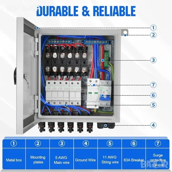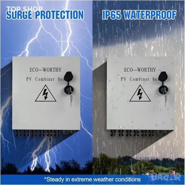 [3 защити]: тази комбинираща кутия осигурява защита от мълния, защита от късо съединение и защита от заземяване и надзор за работата на фотоволтаичната система.