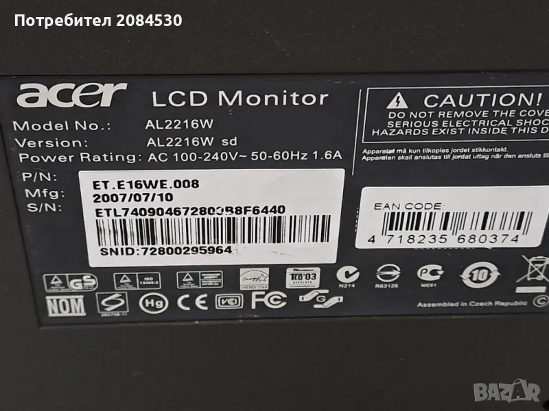 Монитор ACER -22инча / AL2216W/ → Обява 48786015