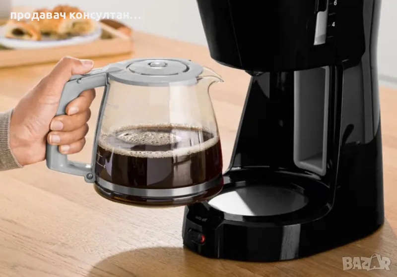 Всичко за добрата чаша кафе – с още по-голям комфорт. Мощно нагряване до 1100 вата (максимално) за цялостно разгръщане на аромата. SafeStorage: безопасно съхранение на стъклената кана. Отвъртащ се филтър за лесно отстраняване и почистване. Защита от прокапване при изваждане на каната. Автоматично изключване: Функция за безопасност и поддържане на температурата.