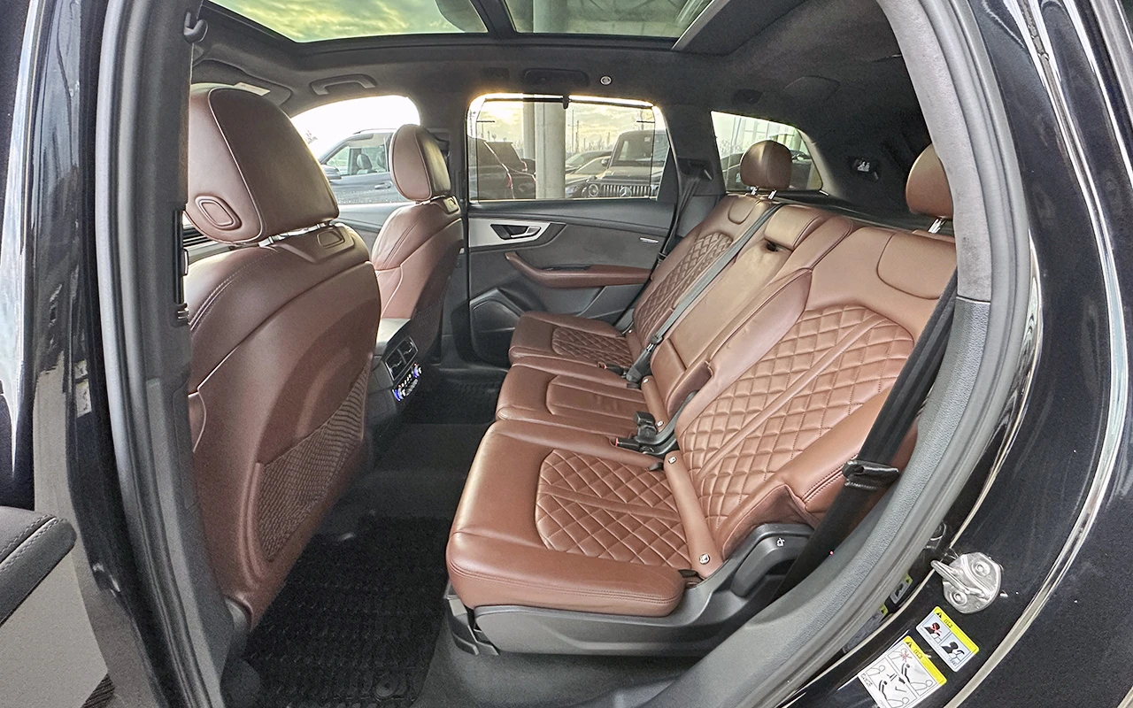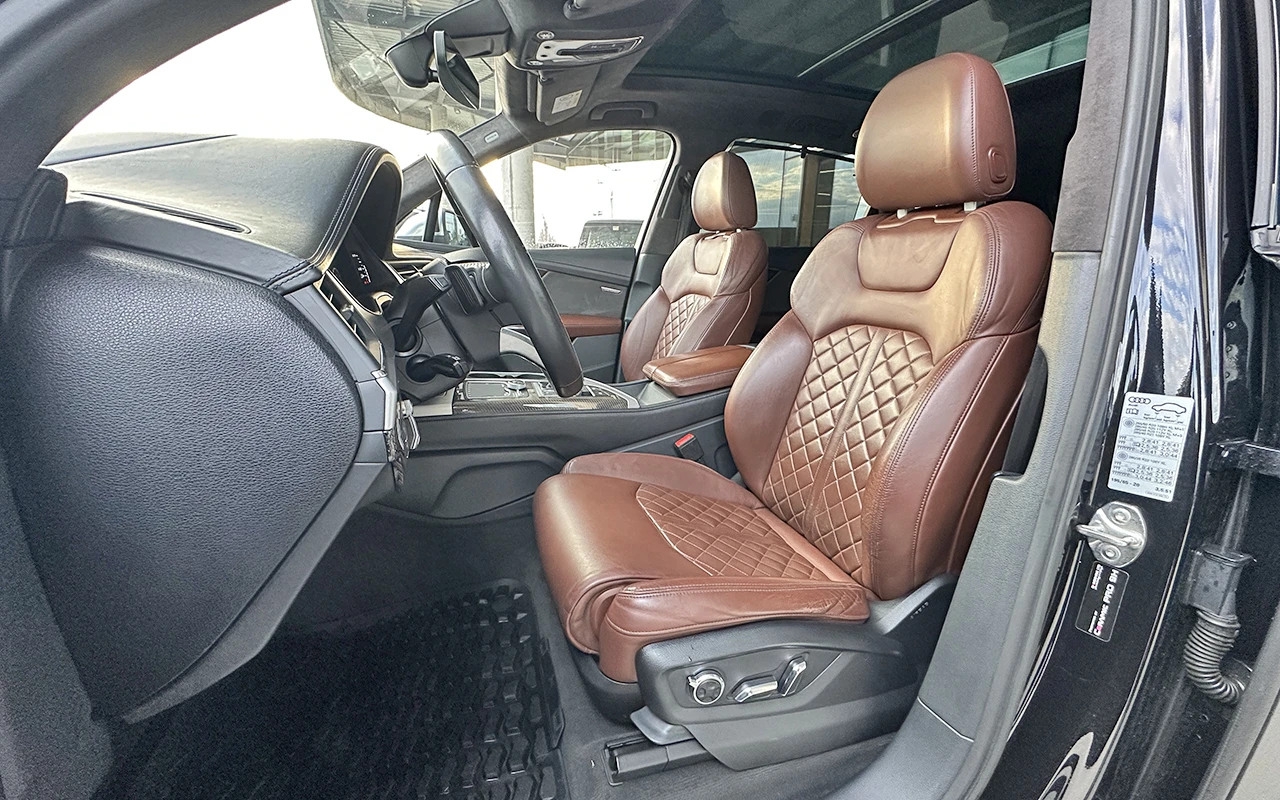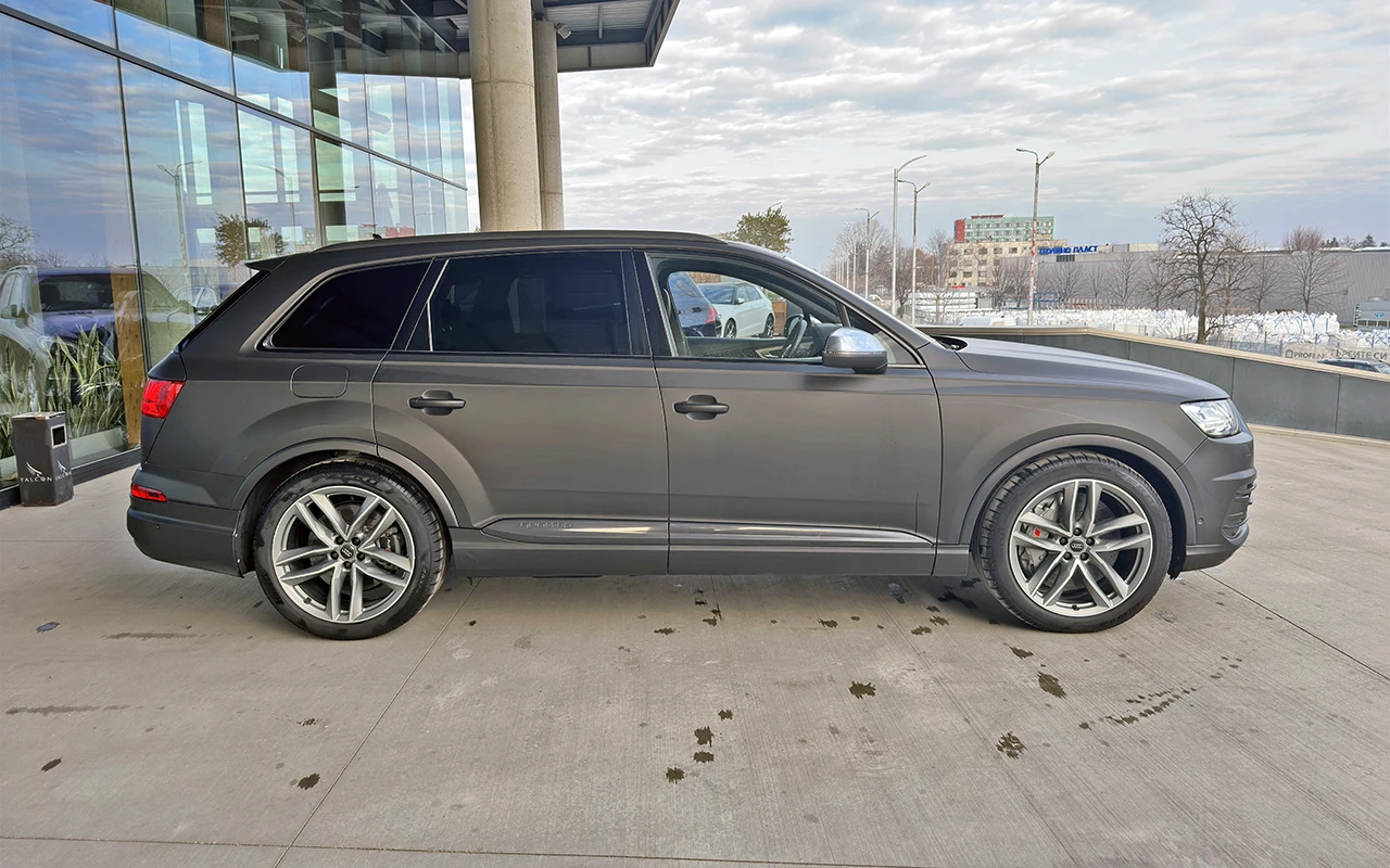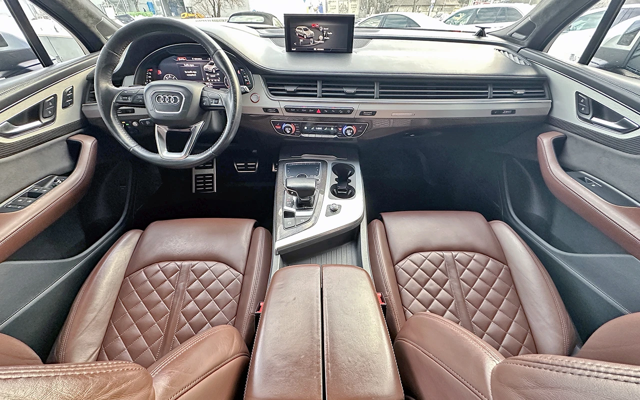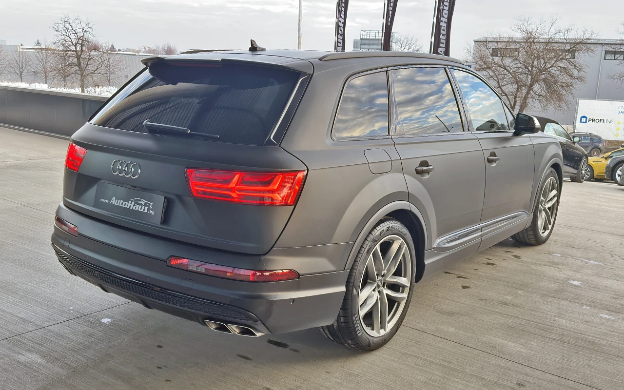 Пълна сервизна история! Възможен лизинг! Възможен бартер! Автомобилът е цялостно облепен в предпазно фолио черен мат! N5H - Ексклузивен кафяв салон Vermont brown Audi design selection 0N5 - Dynamic all wheel steering 1D9 - Теглич - електрически и асистент за ремарке 1PD - Болтове със защита против кражба 1XP - Мултифункционален спортен кожен волан 1Y6 - Автоматичен блокаж на диференциала 2C7 - Ел. настройки за волана 2H9 - Audi Drive select 2MB - Адаптивно въздушно окачване 2V4 - Йонизатор 3FU - Панорамен стъклен покрив 3G4 - Подготовка за детска седалка на мястото до водача 3GN - Система от релси за оптимизиране на багажното пространство 3L4 - Ел. регулиране на предните седалки с памет за водача 3S2 - Рейки на покрива, черни 3Y3 - Механични щори за задното и страничните стъкла 4A4 - Подгряване на предните и външните задни седалки 4E7 - Електрическо отваряне и затваряне на багажника 4F2 - Безключово палене Keyless-Entry 4GR - Подгряване на предното стъкло 4L6 - Вътрешно огледало за обратно виждане с автоматична бленда 4X4 - Странични въздушни възглавници за пътниците на втори ред седалки 4ZD - Пакет " Черна оптика" 5TD - Aлуминиеви интериорни лайсни 5ZC - Подглавници за предните седалки с X-регулиране 6FC - Външни огледала в Aлуминиева оптика 6K8 - Audi Pre Sense City 6NS - Tаван в '' Alcantara'' , черен 6XL - Външни огледала с електрическо регулиране и подгряване, с функция прибиране, автоматична бленда и памет 7AL - Алармена система 7K1 - Система за следене налягането в гумите 7L8 - Старт/Стоп система 7M2 - Алуминиеви прагове с '' S'' лого 7P1 - Лумбални настройки на предните седалки 7X5 - Паркасистент 7Y1 - Асистент при напускане на пътното платно 8G4 - Matrix Beam 8IT - LED фарове 8K3 - Дневни светлини с функция '' изпращане до вкъщи'' 8Q3 - Автоматично динамично регулиране на светлинния сноп 8RF - Bang & Olufsen Advanced Sound System с 3D sound -23 канален усилвател с 23 високоговорителя, с обща мощност 1920 W 8T8 - Дистроник " follow to stop" 8X1 - Система за почистване на фаровете 9AH - Климатроник с четиризонално регулиране 9R1 - Асистент за нощно виждане, засичащ пешеходец пред автомобила 9S8 - Audi virtual cockpit - 12. 3" HD цветен дисплей 9WQ - Подготовка за " Rear Seat Entertainment" 9ZE - Audi phone box FK2 - Ad-blue допълнителен резервоар 24 л. G1G - 8-степенна автоматична скоростна кутия GH2 - Quattro спортен деференциал GZ2 - Вакуум на вратите IT1 - Audi connect с LTE (Long Term Evolution) KA6 - Система от камери за паркиране, включително Top view camera KS1 - Head-Up Display PC5 - Спирачна система с керамични дискове Audi Ceramic PCY - Audi Pre Sense City PCN - Пакет Assistance Tour PCZ - Пакет Assistance City вкл. Park Assist PDJ - Предно и странични предни стъкла - акустични и термоизолиращи, задно и странични задни стъкла след В колона термоизолиращи и затъмнени PE1 - Трети ред седалки (6+1 места) PET - Audi design selection Vermont brown ексклузивен интериорен салон PG3 - " Advanced Key" и алармена инсталация със защита против изтегляне PHZ - Адаптивно въздушно окачване Advanced PIH - Подготовка за закрепване на детско столче /ISOFIX/ на седалката до шофьора с възможност за деактивиране на въздушна възглавница PK2 - Климатроник с четиризонално регулиране PK6 - Стационарно отопление/вентилация с дистанционно управление PNQ - Навигационна система ММI Navigation plus/DVD, включително MMI touch и Audi music Interface PV3 - Регулиране на предните седалки - електрическо с памет за шофьорската седалка PXC - HD Matrix LED фарове с анимирани мигачи на предните и задни светлини QJ1 - Chrome-Paket QQ2 - Пакет " Aмбиентно осветление" QR9 - Асистент за следене на пътните знаци QZ7 - Електромеханично управление на волана с функция Servotronic UH2 - Audi hold assist