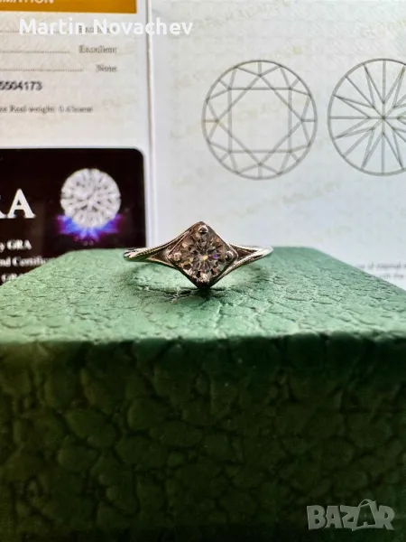 Красив сребърен пръстен с Мойсанит (диамант) 0.5 карата със Сертификат