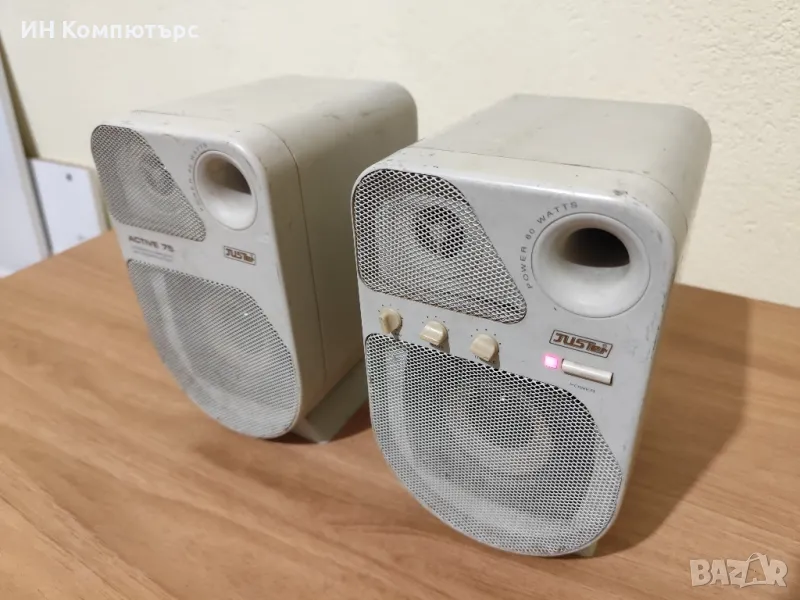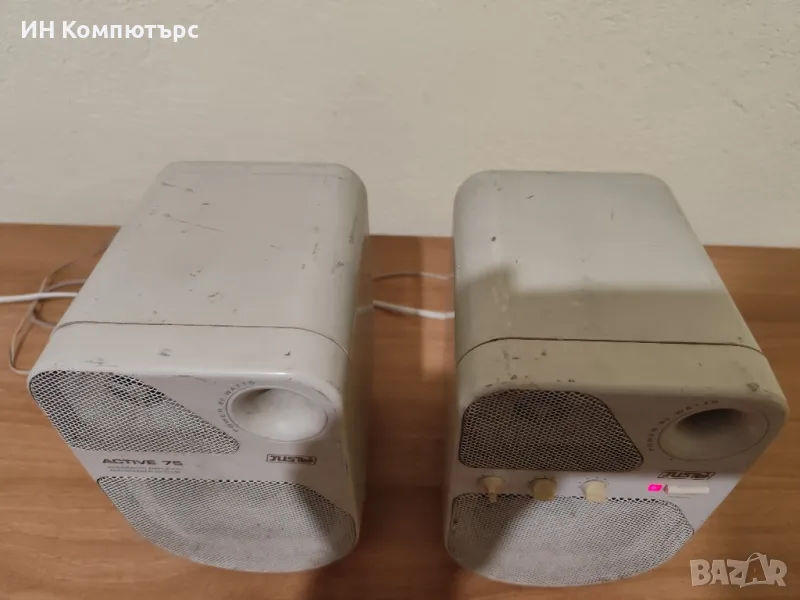 ретро компютърни тонколони. 80W пише на тях, едва ли е толкова но изкарват много приличен звук. Подходящи за ретро гейминг компютър. Следи от ползване, основно драскотини който не сме пробвали по-сериозно да ги изчистим. Като цяло за годините си са в доста прилично състояние.