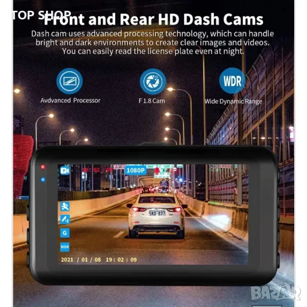 Abask M18 предна+задна 1080P двойна камера за табло → Обява 48787378