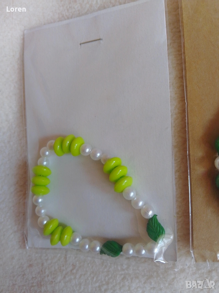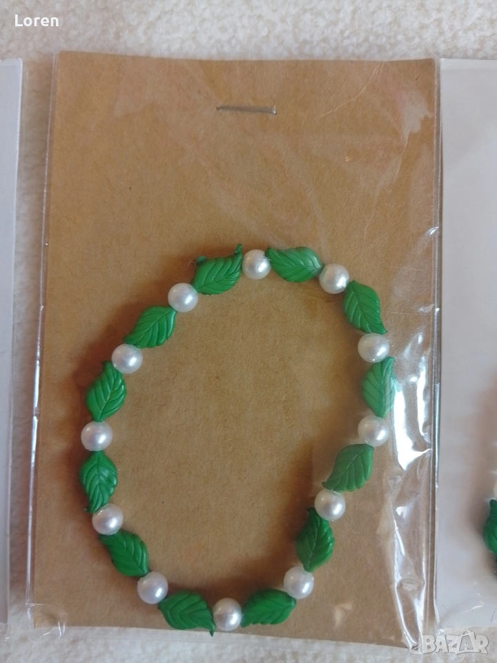 Ново!Гривнчки със зелени листенца и бели перли → Обява 48787512