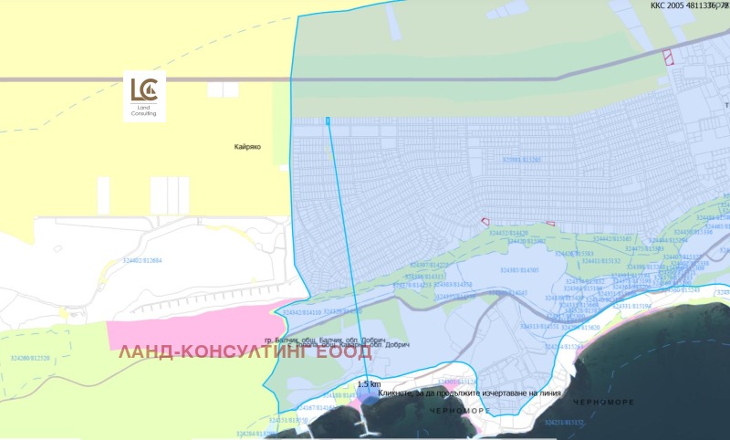 Продава се урегулиран поземлен имот /УПИ II, кв. 89/, регулация от 2005г. в землището на с. Топола, находящ се на 200 метра източно от асфалтов път, водещ към входа на голф клуба 'Блек Сий Рама голф'.В непосредствена близост са разположени другите два голф комплекса: Тракийски скали (Thracian Cliffs) и Лайтхаус (Lighthouse). Параметри на застрояване: плътност(възможна застроена площ) ЗП40%=240м2, Кинт.(възможно РЗП) 0,8= 486м2; Височина (кота корниз) -7 метра. В района има изградена мрежа за водоснабдяване и енергоснабдяване. Регулацията е приложена и няма нужда да се отчуждават имоти за прокарване на инфраструктура. Имотът попада в Охранителна зона Б -разрешават се дейности определени в Закона за устройството на Черноморското крайбрежие.Отсточяие от морето- около 1,5 км. Югозападно от имота е прочутата 'Балчишка тузла', известна с богатото си съдържание на лечебни минерали води и соли (луга).