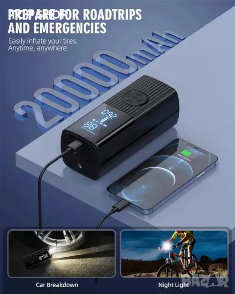 Преносим въздушен компресор за помпане на гуми-180PSI & 20000mAh преносима въздушна помпа