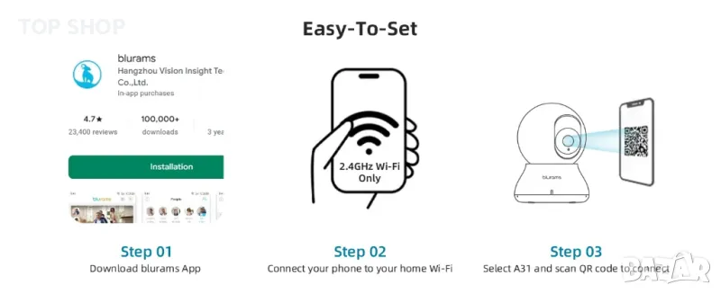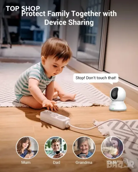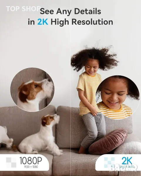 2K HD Изключително качество на картината: 2304x1296 разделителна способност за улавяне на по-отчетливи детайли, функции във функцията IR CUT за заснемане на ясни видеоклипове и снимки от деня до нощта, дори в условия на затъмнение. Лесна за инсталиране и работа, тази вътрешна охранителна камера работи с 2.4G WiFi. (5G не се поддържа)