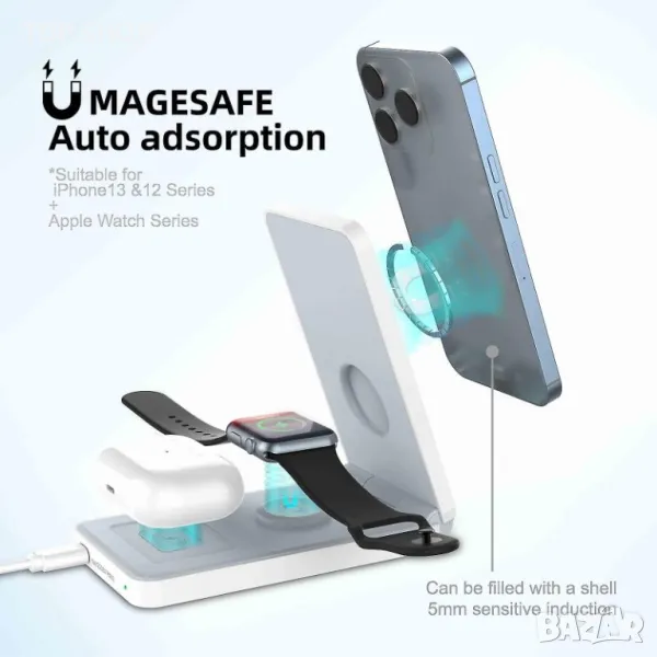Безопасно бързо зареждане Дизайн на безжично зарядно устройство за бързо зареждане. Със защита от свръхток, свръхнапрежение, свръхтемпература, защита от късо съединение, както и функция за откриване на чужд обект, той може да предотврати повреда от презареждане на батерията на оборудването. Освен това основата на зарядното устройство е оборудвана с масивни отвори за разсейване на топлината, за да се осигури безопасно зареждане на устройството