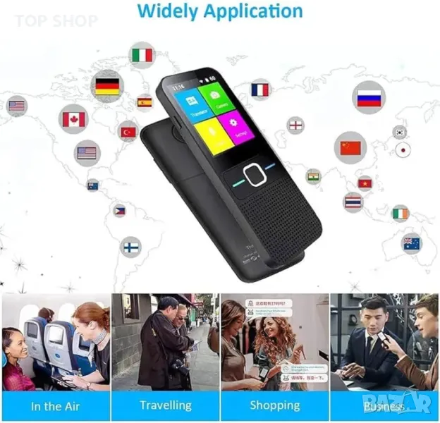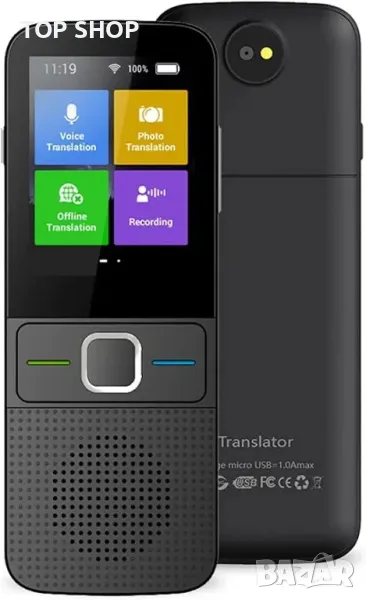 Превод на запис на гласов текст и снимка: Преведеното съдържание се показва на 2,4-инчов сензорен екран, Четене на глас, оптимизиран за OCR (разпознаване на символи) разпознаване на ръкописен текст, Превод на снимки, файлове, менюта, без нужда от ръкописно въвеждане, спестяване на време.