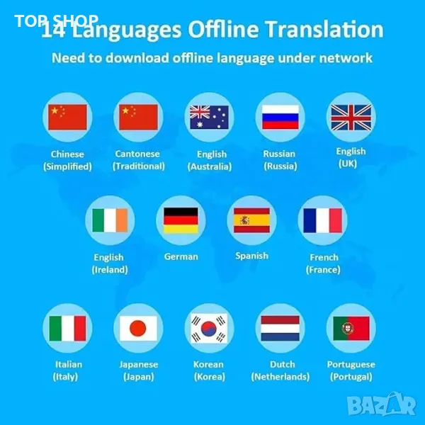 WIFI Hotspot и офлайн устройства за незабавен превод: Свържете се с WIFI или гореща точка, без SIM карта, няма нужда да изтегляте ПРИЛОЖЕНИЕ, можете да започнете превод в реално време незабавно. Функция за офлайн превод, поддържа офлайн английски, китайски, японски, корейски, немски, испански, френски, италиански, холандски, португалски, руски двупосочен превод (само за спешна употреба).