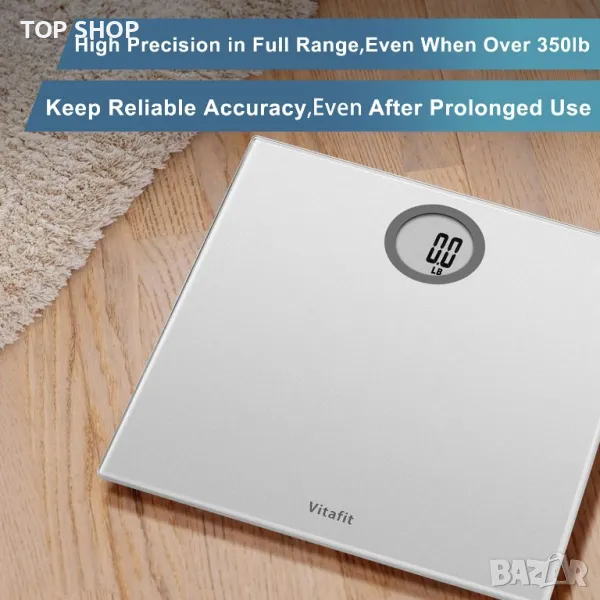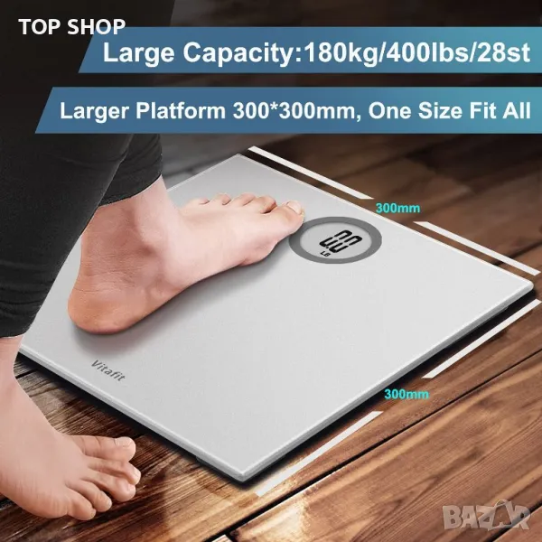 Диапазон на измерване: 11 lb-400 lb/5 kg-180kg/ 28st, изграден с 4 високопрецизни сензора, предоставящи резултати с деление на 0,1lb/0,05kg.