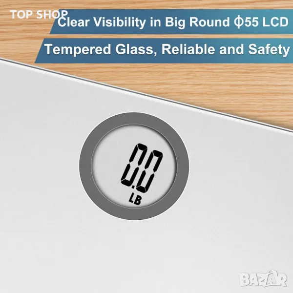 Изключително здраво закалено стъкло с голяма платформа 11,8 in x 11,8 in за осигуряване на безопасно измерване.