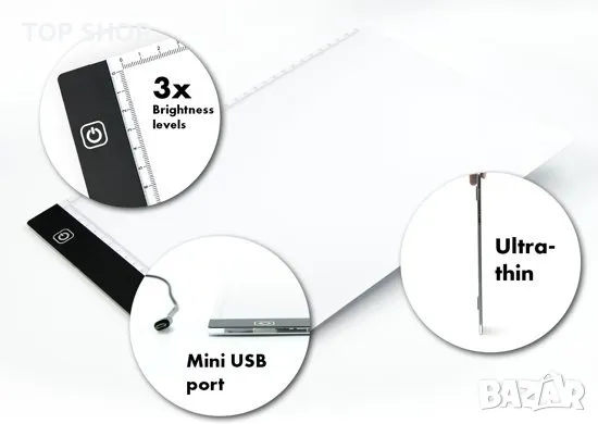 Професионалната дъска с ЛЕД осветление за прекопиране на графики , илюстрации и рисунки. 3 нива на интензивност на осветлението. СУПЕР ТЪНКА И ЛЕКА. С графична мрежа от точки. ЛЕД светодиодите са много модерни. Благодарение на вградената светлина, тя просто осветява основата и лесно ще изчертаете най-малкия детайл. Подходящ е за архитекти, графици, аниматори, студенти, дизайнери,за рисуване на manga и рисуване на комикси. Благодарение на компактните си размери, ще бъде лесно достъпна до всяко място.