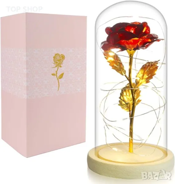 2. LED розово куполно осветление: Розите в стъкления купол никога не избледняват и изглеждат супер цветни и блестящи, можете да ги запазите за дълго време, идеални за колекция или декорация на дома.
