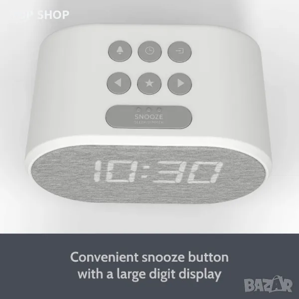 ✔️ FM радио, лесно отлагане и контрол на заспиване - Напълно функционалното FM радио ви позволява да съхранявате до 10 предварително зададени настройки, докато напълно регулируемата функция за заспиване ви позволява да зададете забавяне в минути, след което радиото автоматично ще се изключи. С неговия голям, лесен за достигане бутон за отлагане можете да получите няколко допълнителни минути почивка, без да се налага да търсите наоколо - идеално за работни дни, уикенд сутрин или мързелив неделен следобед.