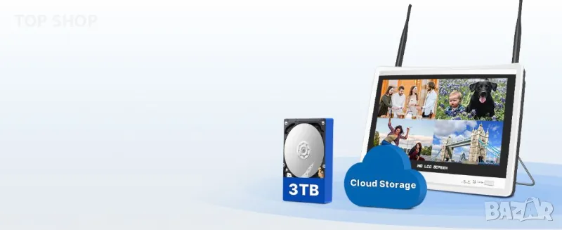 【Двупосочно аудио + преглед на възпроизвеждане】 С функцията за двупосочен звук, всичките 4 PTZ безжични камери за сигурност ви позволяват да говорите с хората наоколо чрез камерата на приложението Eseecloud на телефона, където и да сте. 3TB твърд диск, предварително инсталиран в монитора, можете да гледате възпроизвеждането от монитора или приложението, то автоматично ще презапише най-ранния запис.