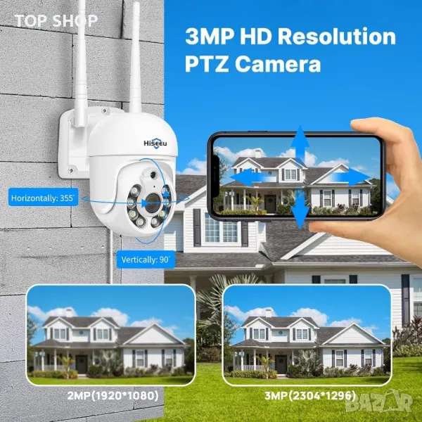 【Множество връзки и висококачествена услуга】Външната PTZ охранителна камера Hiseeu поддържа множество връзки, като: WiFi връзка и Ethernet връзка. И мониторът поддържа преглед на изображението на камерата, дори ако няма интернет. Дистанционно гледайте камерата на вашия телефон, iPad, компютър, лаптоп и т.н.