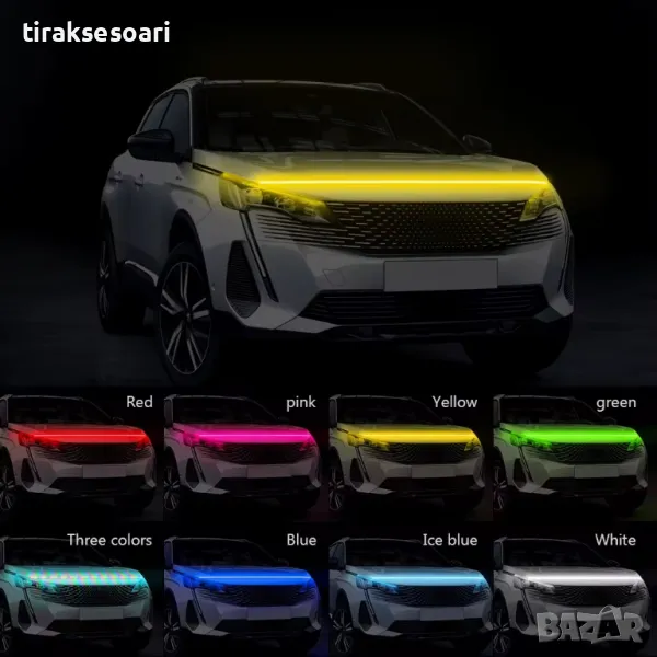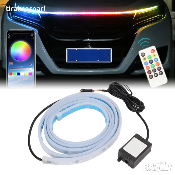 лед лента за преден капак, rgb diodna lenta za preden kapak, rgb гъвкава диодна лента за преден капак, дневни светлини за леки коли и бусове, диодна лента за преден капак с мобилно приложение и RGB цветове