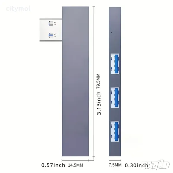 Хъб с 3 порта USB3.0 5Gbps, пренос на данни, мулти сплитер OTG за PC лаптоп ноутбук