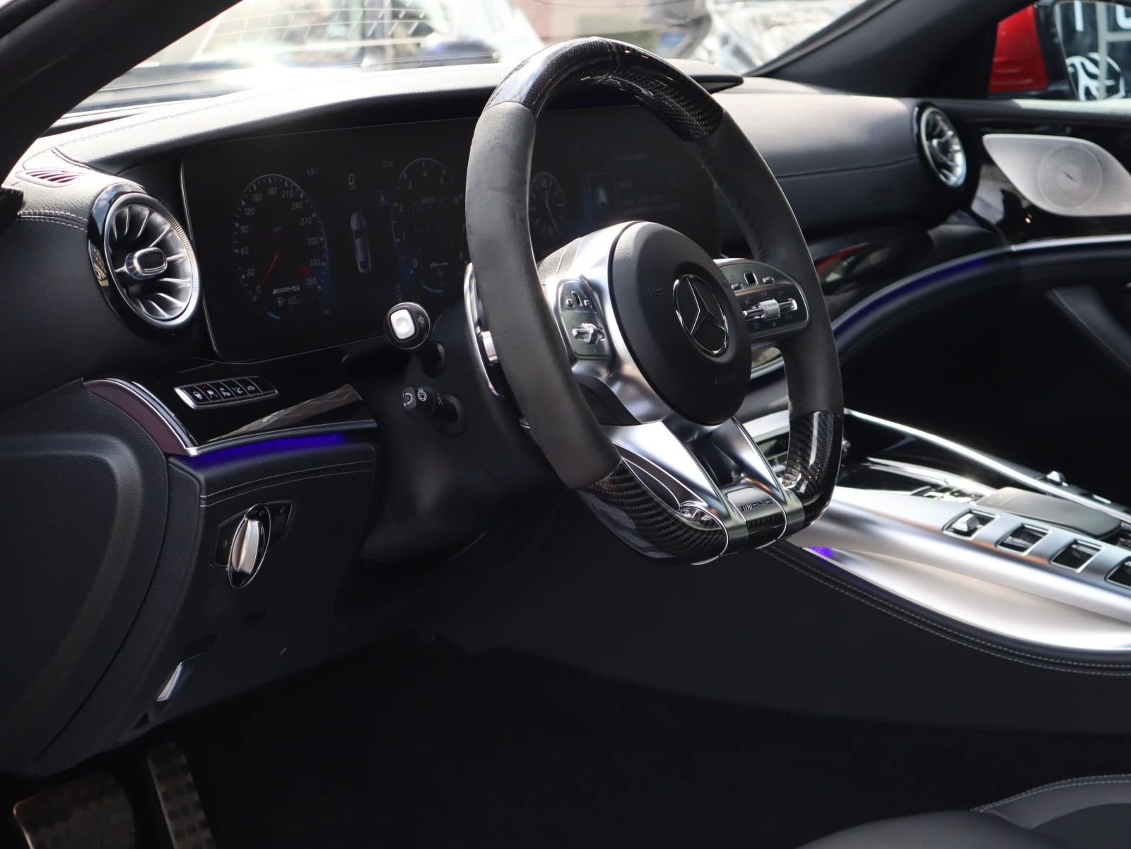 камера система, керамична спирачна система (AMG), комфортен автоматичен климатроник (Thermotronic 3-зонен), комфорт пакет акустика, багажно пространство Пакет, волан (AMG Performance, карбон), отопляем волан, алуминиеви джанти предни/задни: 10x21 / 11. 5x21 (AMG, кръстосани спици, титаниево сиво, блясък), пакет памет, мултифункционална телефония, мултиконтурен пакет седалка Active, разделена облегалка на задната седалка / сгъваема, система за измиване на предното стъкло с отопление, електрически плъзгащ се/накланящ се покрив (стъкло), странична въздушна възглавница (sidebag) задна, предавател за отваряне на гаражни врати (интегриран), серво заключване на вратите, червени колани, отопляеми седалки плюс предни, ски чувал, щора на задното стъкло (механична), 230V контакт, тъчпад (централна конзола), ТВ тунер, подготовка на дигиталния ключ на автомобила в смартфона, подготовка за развлекателна система отзад, топлинен комфортен пакет отпред, допълнително отопление (паркинг нагревател) Допълнителни функции: Въздушна възглавница от страната на водача/пътника, амбиентно осветление (разширен обхват), пакет AMG Dynamic Plus, LED мигачи със светлини за движение, стандартен дизайн и линия на оборудване, електроника. Диференциал с ограничено приплъзване, система за подпомагане на шофиране: Agility Select / Dynamic Select (превключване на режима на шофиране), система за подпомагане на шофиране: активен асистент за поддържане на лентата, система за подпомагане на шофиране: асистент за дълги светлини Adaptive plus, система за подпомагане на шофиране: асистент за ограничаване на скоростта, система за подпомагане на шофиране : система за пътна информация Live Traffic, Електрически прозорци отпред + отзад, AMG стелки, задна врата с автоматична система за отваряне и затваряне, AMG управление на задния мост, интериор: облицовка с пиано лак, черна облицовка на покрива, купе: 5 врати, Keyless Go стартер, въздушна възглавница за коленете от страната на пътника, въздушна възглавница за коленете от страната на водача, табло с инструменти с променлив дисплей (Widescreen Cockpit), подготовка на комуникационния модул (LTE) за Mercedes me connect, система за въздушни възглавници за глава (прозорец), медиен дисплей, двигател 4, 0 л - 470 kW V8 KAT, Multibeam LED, бензинов филтър за твърди частици (OPF), парк пакет, система за следене на налягането в гумите, ниски емисии според Евро стандарта за емисии 6d-TEMP, странична въздушна възглавница (Sidebag) отпред, странични прагове в цвят на каросерията, покритие на седалката / тапицерия: кожа Nappa, пакет огледала, спортна изпускателна система (AMG Performance), спортно шаси (AMG Ride Control +), спортни седалки отпред, контакт ( 12V връзка ) в багажника/товарната част, съраунд система Burmester, подготовка за навигационна система (Garmin MAP Pilot), подготовка за цифрово радио Лизинг! За повече информация 0899266666, e-mail: varna@isauto. net