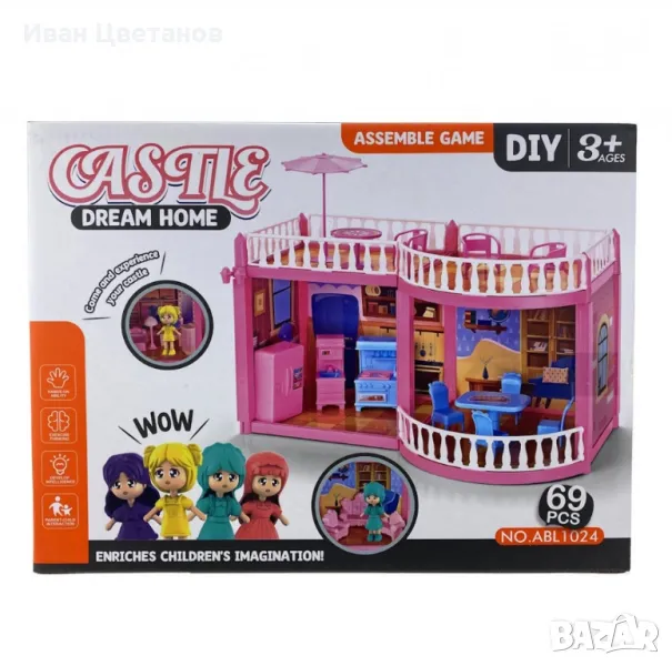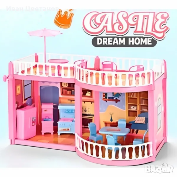 Тип продукт: Къща за кукли с обзавеждане и кукли;