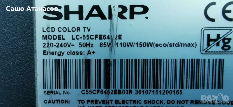 SHARP LC-55CFE6452E с счупена матрица ,T.MS6308.711 ,MIP550D-DX2 ,6870C-0532B ,SPAD_401_Rx+LED Light