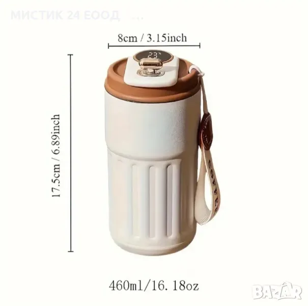 Smart Термо Чаша с LED Дисплей Вакуумно Изолирана Неръждаема Стомана Кафяв Капак → Обява 48791793