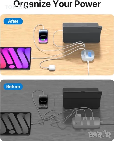 Зареждайте 6 устройства едновременно: С два USB-C порта и четири USB-A порта, доставящи общо 40 W мощност, можете да зареждате телефона, таблета и други едновременно. Лек и компактен дизайн, винаги спестява място на бюрото ви, идеален спътник за зареждане за вашия дом, офис и бизнес пътувания.