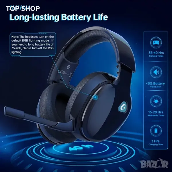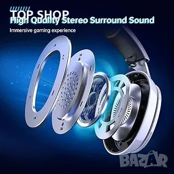 Ергономичен дизайн и дълъг живот на батерията: безжични слушалки Gtheos за дизайн на превключвател, подплатени и регулируеми ленти за глава, не само подходящи за намаляване на натиска на главата, но и подходящи за различни форми на главата. Ушите са изцяло покрити от меки и дишащи мемори протеинови наушници, които ефективно изолират шумовете и позволяват дълги игрални сесии без умора. Тази слушалка PS5 има устойчиво време за игра от 35-40 часа. С включен хладен RGB светлинен ефект (15-20 часа). Пълно презареждане само за 3 часа.