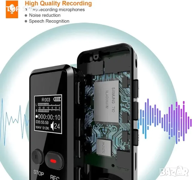 Отлично качество на запис: ясен запис и два микрофона с динамично намаляване на шума, различен битрейт, по-висок битрейт, по-високо качество на запис, кристално чисти записи и MP3 плейъри.