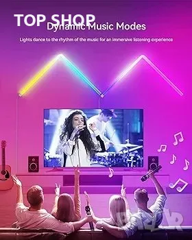 Управление на интелигентно приложение: Управлявайте лесно вашите LED светлинни ленти с приложението "Smart Life", като например DIY цвят/сцена, музикални режими, сценични режими и функция за таймер. Оптимизирайте изживяването си при гледане на телевизия с едно натискане на бутон с вашия смартфон.
