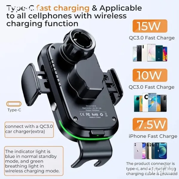 Auckly 15 W бързо безжично зарядно устройство Поставка за мобилен телефон за кола