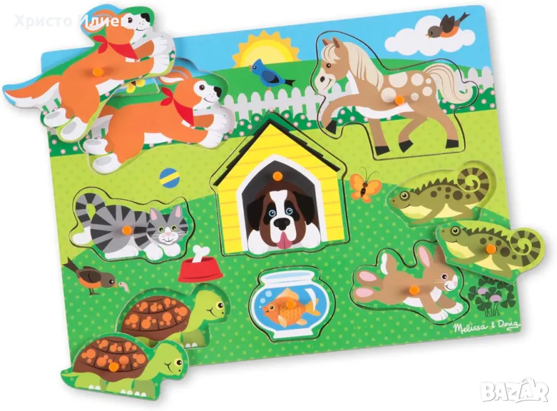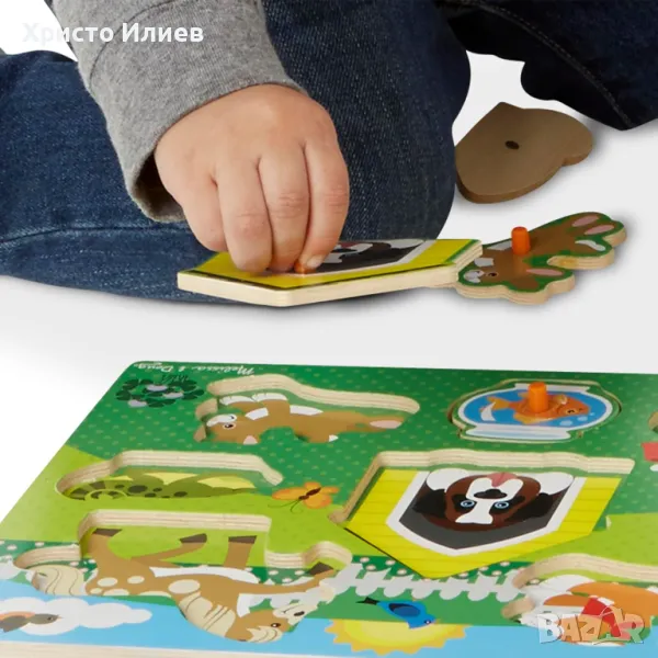 Всяко дете ще се забавлява с този пъзел, включващ 8 дървени животни, които са лесни за хващане от малките ръчички.