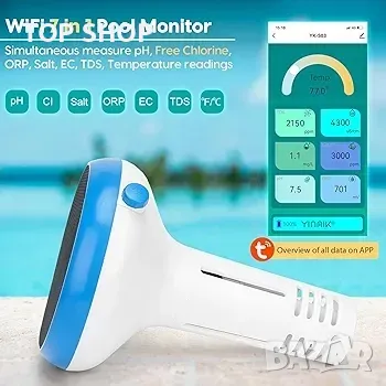 По всяко време, навсякъде: Безжична връзка. След като тестерът за рН и соленост е свързан към вашия смартфон, отворете приложението Tuya, можете да преглеждате данни за басейна в реално време по всяко време и навсякъде (приложението е безплатно)