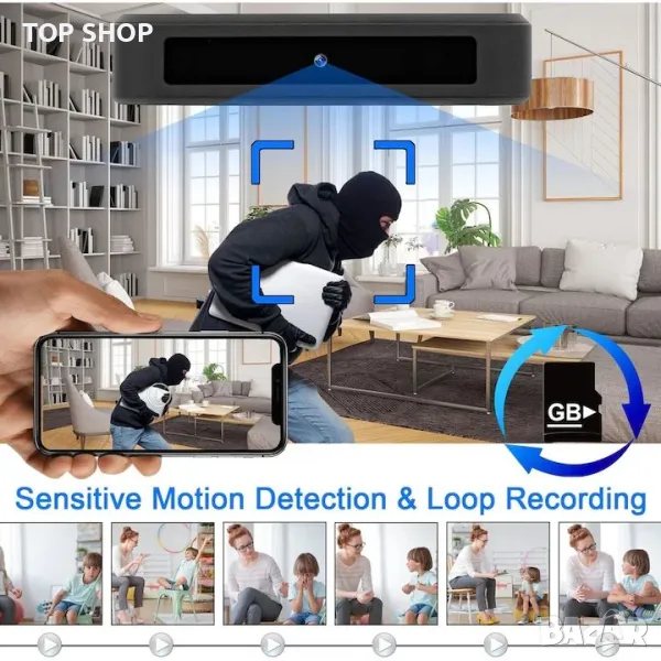 Нощно виждане и детекция на движение. Шпионската камера има 4 вградени "несветещи" инфрачервени LED светлини, които могат да се използват през нощта при пълна тъмнина. Възможно е и ръчно регулиране на чувствителността на сензора. След като камерата засече движение, тя ще изпрати алармено известие до вашия мобилен телефон и можете да видите записаното съдържание за детекция на движение в мобилното приложение.