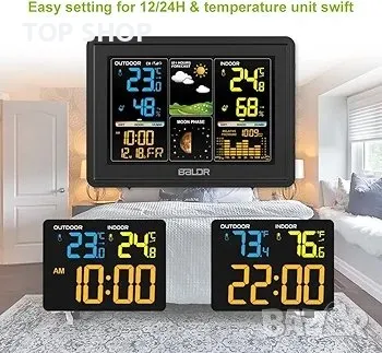 метеорологична станция: Пълни актуализации за времето, часа и датата, плюс графичен дисплей за фазите на луната въз основа на календарната дата; Вътрешната и външната метеорологична станция Baldr предоставя всичко, което трябва да знаете за времето с един поглед.