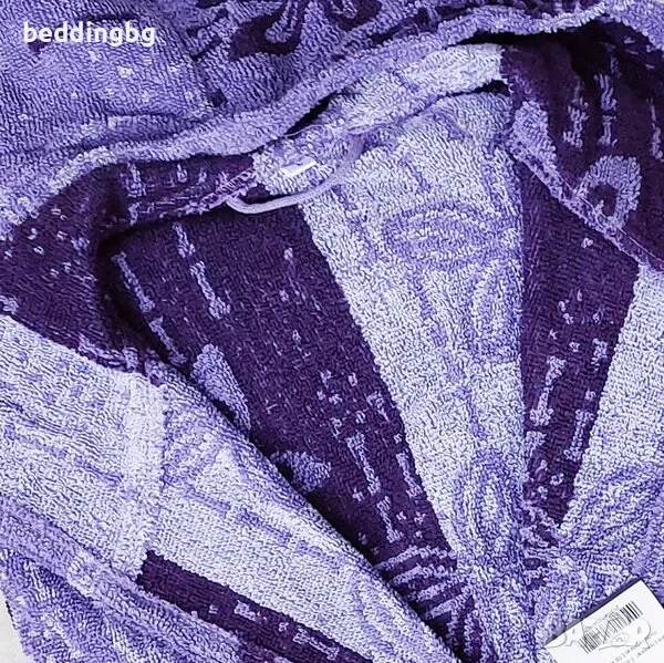 Халат за баня с качулка в лилаво, изработен от 100% памук. Произведен в България от Яна – Панагюрище, халатът има висока плътност 400 г/м², което го прави мек и попиващ. Флорален мотив и функционални елементи като два джоба и колан придават елегантност и удобство.