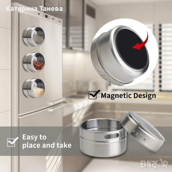 Подарете удобство и стил за вашата кухня с практичните бурканчета за подправки от неръждаема стомана, в комплект с прекрасна магнитна стойка за лесно съхранение.