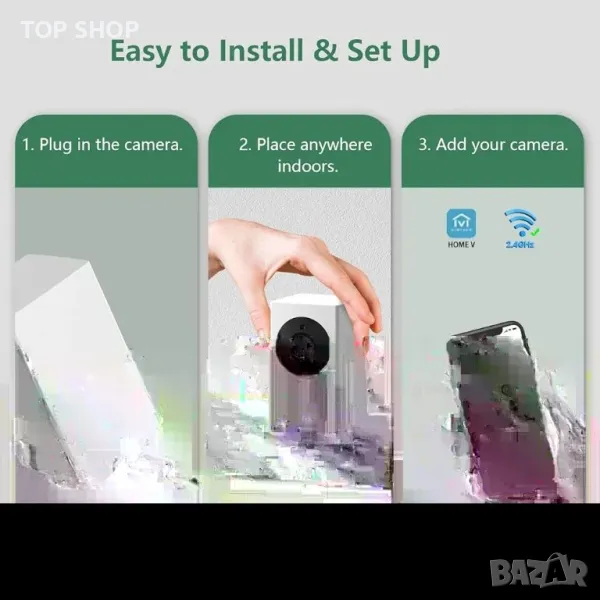 1080P разделителна способност и IR нощно виждане и PTZ】Насладете се на кристално чиста 1080P HD резолюция чрез 3,0 mm обектив. Функцията за панорамиране и накланяне, достъпна чрез приложението „HOME V“, гарантира липса на слепи зони. Съвместима с 2,4 GHz WiFi, тази вътрешна камера за сигурност включва невидими инфрачервени светлини за ясно нощно виждане.