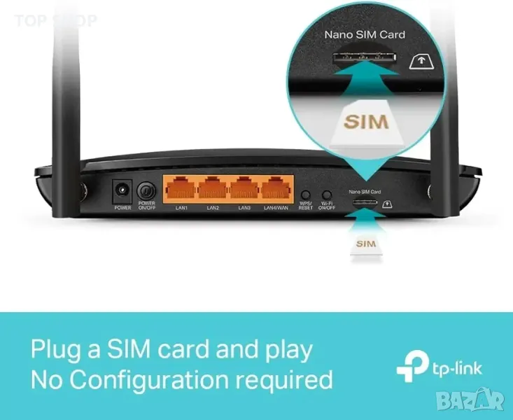 TP-Link Archer MR550 рутер 4G+ Cat6 300Mbps, Wi-Fi AC1200 Dual Band, със SIM, MicroSIM, Gigabit LAN