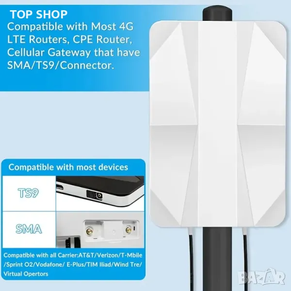 Подобряване на насочената производителност: Подобрете изживяването на сигнала на закрито с нашата специално проектирана 5G/4G LTE насочена антена. Прецизното позициониране и правилната инсталация значително подобряват скоростта на приемане на сигнала, осигурявайки стабилна и ефективна връзка за вашия дом или централен офис. Насладете се на безпроблемно мрежово изживяване, където и да сте.