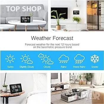 【Метеорологична станция 9 в 1】Външна температура и влажност, прогноза за времето, вътрешна температура и влажност, лунна фаза и дата, аларма и сън, барометър. Нашата метеорологична станция ви улеснява в познаването на времето и по-удобно и приятно ежедневие.
