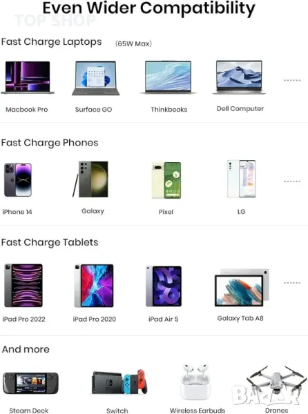 ✅【65W бързо зареждане за всички устройства】Вдъхновяващите 65W на INIU зареждат вашия MacBook Pro до 50% за 30 минути. Докоснете се до най-новите нужди за зареждане на вашите телефони, таблети и steam deck, футуристична функция, на която да разчитате.