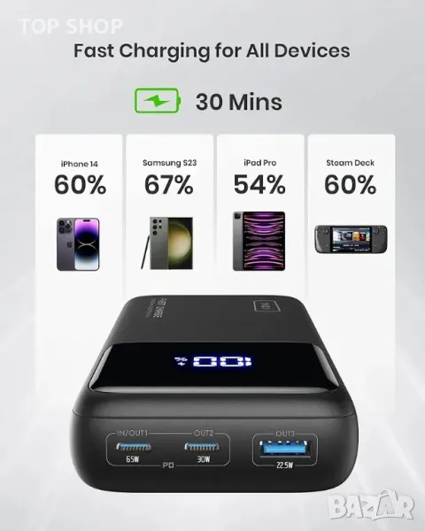 Преносимо зарядно устройство INIU, 65W бързо зареждане Power Bank 25000mAh