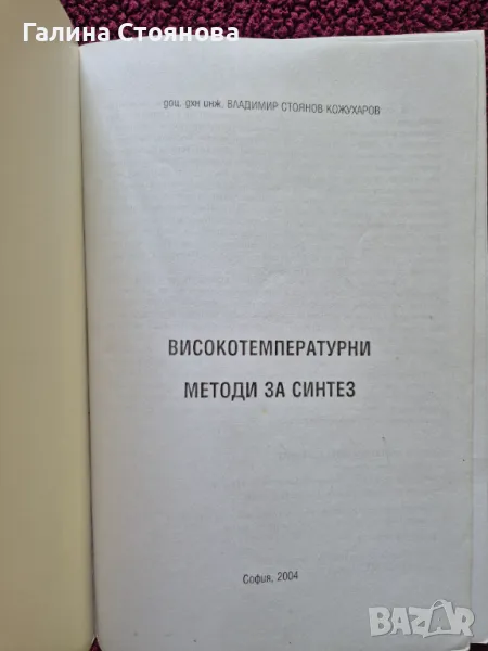 - Високотемпературни методи за синтез- доц. дхн инж. Владимир Кожухаров– изд. Мартилен, - 18 лв.
