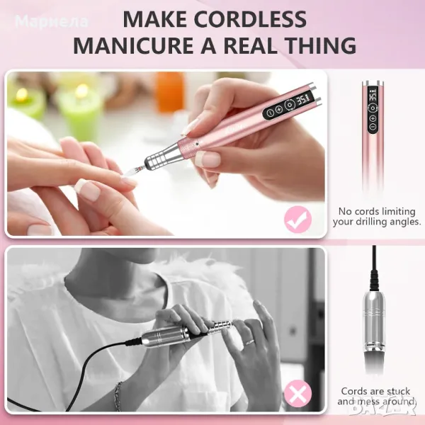 Електрическа Безжична Пила за Маникюр и Педикюр / Безжична Пила за Нокти