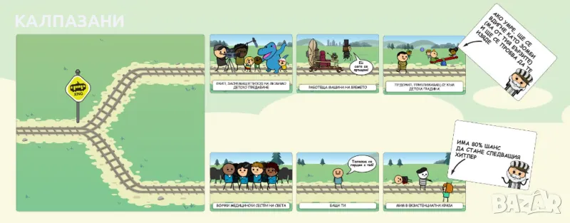 Отборите могат и да се саботират взаимно като поставят демонични карти пред опонентите си, по този начин накланяйки везните в тяхна "полза". Можете да избирате сред 500 карти, илюстрирани от хората, които съсипаха интернета - Cyanide & Happiness.