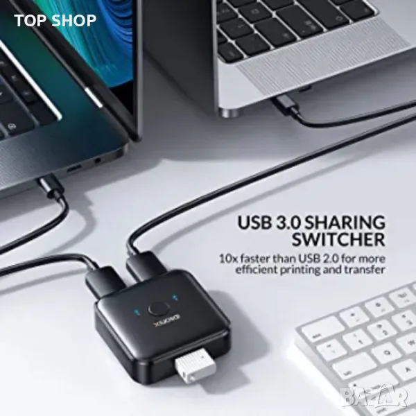 Подреден работен плот: Можете да свържете 2 компютъра с 1 клавиатура или да споделите 1 принтер и да превключите компютъра, който трябва да използвате, с едно щракване, което прави работата ви по-ефективна и работния ви плот подреден.
