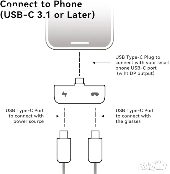 Rokid Hub предлага 2 женски USB-C порта и 1 мъжки USB-C порт, което помага да активирате докинг режима на вашия Nintendo Switch за миг. Той също така предотвратява изтощаването на батерията, като поддържа зареждане на вашия телефон и свързване към очилата едновременно. Без безпокойство за батерията Зареждайте устройствата си, докато ги носите с очилата. Без разхвърляни кабели Включете и играйте с Nintendo Switch. Съвместимост: Android устройства с USB-C порт, Nintendo Switch